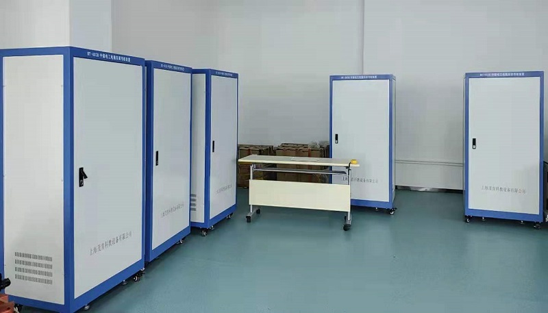 該設備(bèi)按照標(biāo)準電氣控製櫃設計製造(規格:800×460×1850mm),利用雙麵空間位置,櫃內裝有完成各(gè)種照(zhào)明電路所需(xū)的單相電度表、日光燈、白熾燈、單聯(lián)開關、感(gǎn)應開關、聲控開(kāi)關、觸摸(mō)開關、插座等,以及電(diàn)氣控製所需要的多(duō)種低壓電器,如漏電斷路器、熔斷器、電流互感器、接觸器、中間繼(jì)電器、時間繼電器、熱繼(jì)電器(qì)、行程開關、按鈕、信號燈、轉換開關、電壓表、電流表以及(jí)三相四線有功電度表(biǎo)等。為了延長電器的使用壽命,降(jiàng)低材料消耗,各電器的接點都已與接線端子相連(lián),學生隻需在接線端(duān)子上接線訓練,以求電氣元件經久耐用。技訓櫃還配備多台附屬電機,通過該電動機支持可作各種實驗(yàn)。