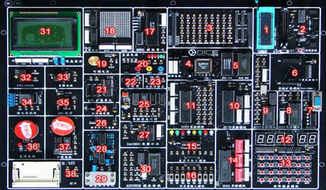 | 19 | 可調電(diàn)壓模塊 | 39 | 標配超強DICE-Keil51仿真器(USB接口) |