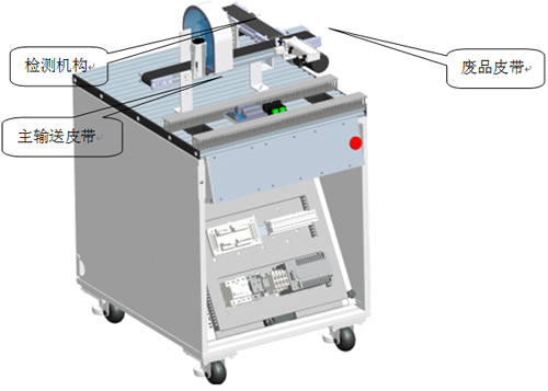 主皮帶運行,接收上一站擰好(hǎo)蓋後的物料瓶子,當物料瓶(píng)經過檢測機構時:回(huí)歸反射傳感(gǎn)器檢測瓶蓋是否擰緊;檢測機構檢測瓶子內部顆粒(lì)是否符合要求;對(duì)擰(nǐng)蓋與顆粒均合格的瓶子進行瓶蓋(gài)顏(yán)色判別區分;擰蓋或顆粒不合格的瓶子被(bèi)分揀機構(gòu)推送到廢品皮帶(dài)上(短皮帶);擰蓋與顆粒均合格(gé)的瓶子被輸送到皮帶末端,等(děng)待機器人搬運。