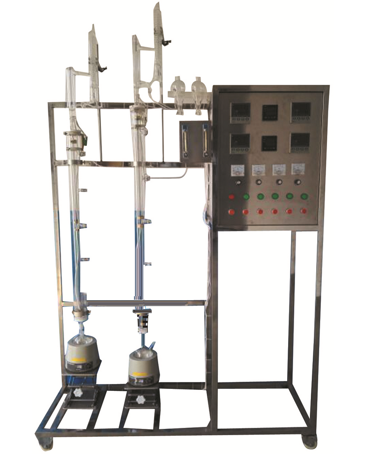 1.用於各種有機物質的精製分離,裝置有兩(liǎng)個塔,一個為(wéi)無側口的(de)玻璃塔體,另一個為有五個側口的玻璃塔體,配有擺錘式的回流塔頭,既可以實現連續操(cāo)作(zuò),又可(kě)以進行間(jiān)歇操(cāo)作,既可采用分相回流,又可(kě)采用混相(xiàng)回流。 2.可實現(xiàn)反應精餾、萃(cuì)取精餾、普通常減壓精餾等操作。 3.裝置能完成(chéng)不同回流比操作,考察回流比(bǐ)對產物分布、分離效率的影響。 |