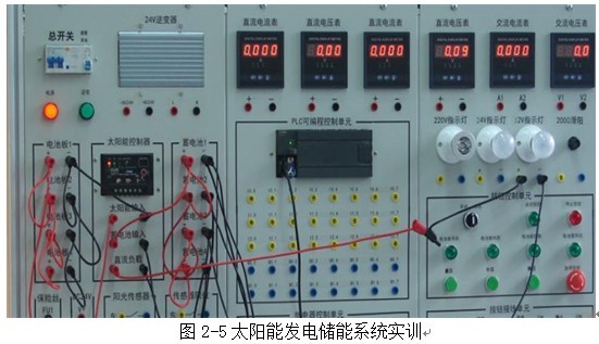 光伏發電控製監控係統由電(diàn)池板單元、太陽能(néng)控製(zhì)器(qì)單元、蓄電池單元、保險單(dān)元、陽光傳感(gǎn)器、傳感器限位單元、模擬太陽單元、兩軸聯動單元、plc控製單元(yuán)、繼電器(qì)單(dān)元、按鈕及按鈕接線單元、和(hé)相應的逆變器儀(yí)表電源(yuán)組成。光伏發電控製監控係統采用接插線的(de)形式進行接線,方便學(xué)生自行設計(jì)實訓(xùn)。