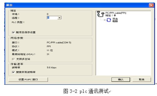 (2)點擊瀏覽條中的通(tōng)訊欄和plc進行通訊(xùn)測試。如圖3-2所示: