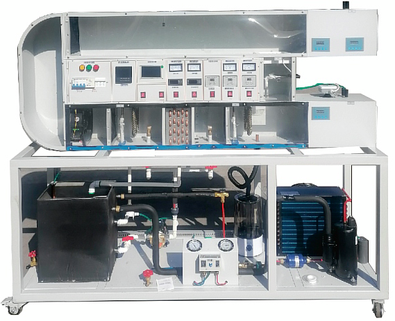 1、本實驗裝置為(wéi)《空氣調節(jiē)》課程實驗教學(xué)設備,用它可(kě)以模擬不同季節室內和(hé)室外的環(huán)境和空氣處理調節的方法,進(jìn)行集中式(shì)空調係統不(bú)同循環形式的空(kōng)氣調節實驗。還可以做變風量運行調節實驗和製冷係統的參數測定及其(qí)調節實驗(yàn)。裝置具有透明風管,可直觀地觀察和測(cè)試。
