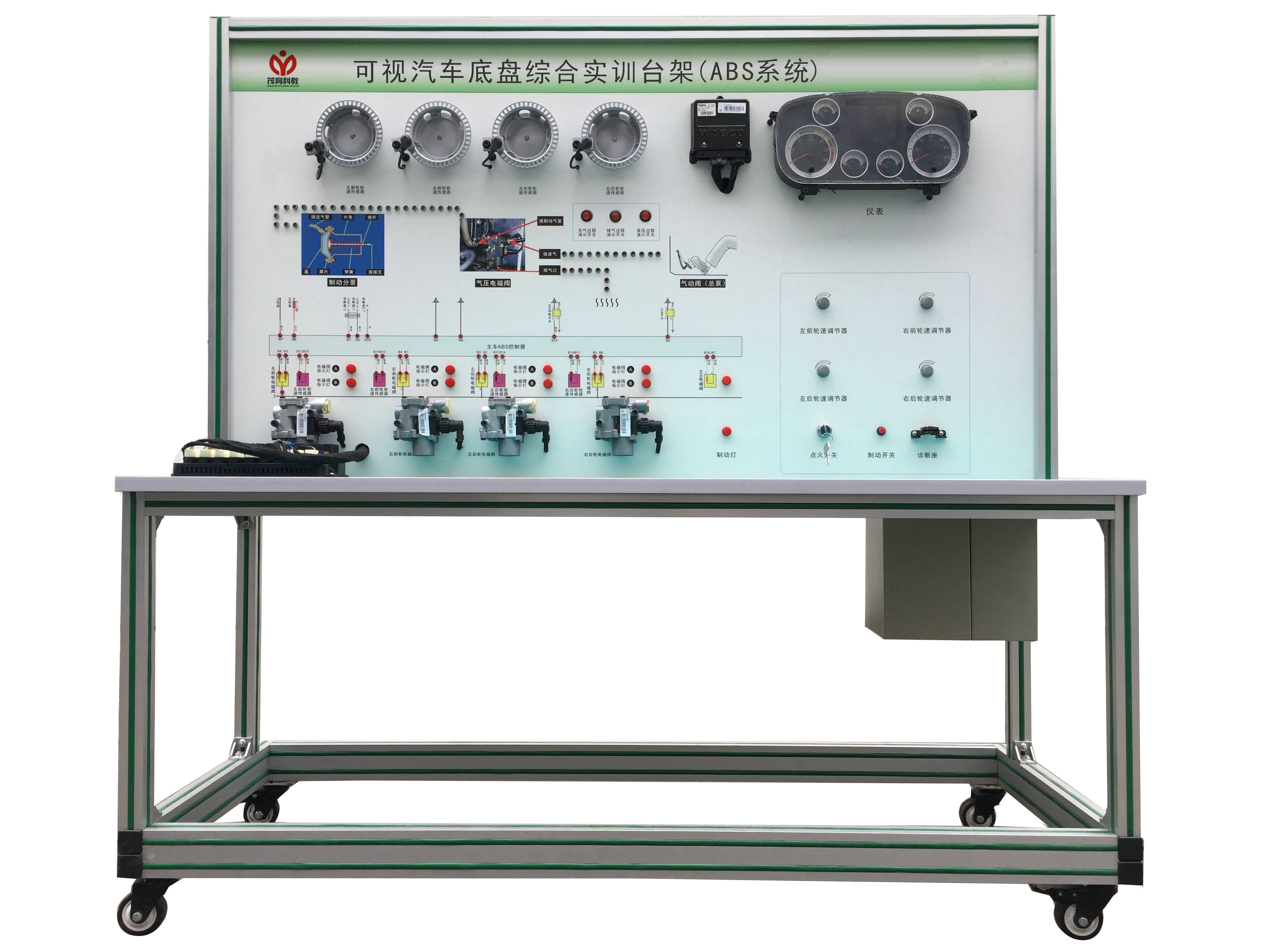 整車底盤電器係統(ABS係統):全新原車儀表盤、ABS電腦(nǎo)、4個ABS電磁閥,輪速傳感器,點火開關、主繼電器、保險盒、 OBD診斷接頭(tóu)、線束等。模擬車輪運轉,演示ABS製動係統工作原理。