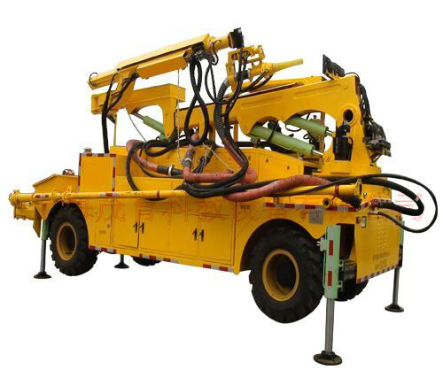 2)臂架回轉→攪拌機啟動→泥漿泵啟動→噴漿臂起升→噴漿臂前(qián)移→位置及角(jiǎo)度調整。