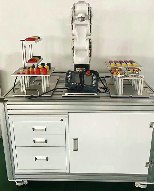 | 2 | 拆裝實訓台(tái) | 防靜電拆裝一(yī)體化實(shí)訓台主體(tǐ)由鋁型材焊接而成,兩側安裝噴塑鋼板,下方配置推拉式抽屜,用於放置機器人拆裝(zhuāng)工具,整體結(jié)構牢固美觀,便於機器人(rén)的(de)拆裝維護及(jí)示教編程作業。防靜電拆裝一(yī)體化(huà)實訓台尺寸:≥1250*1000*820 mm。 |