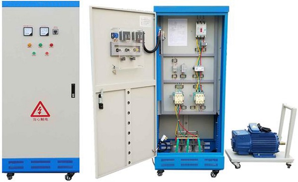 正面柜门设(shè)有交流电压表、交流(liú)电流表、电压指示切换开关,通(tōng)过电压指示切换开(kāi)关可分(fèn)别指示电网(wǎng)的UUV、UVW、UWU线电压值(zhí),交流电流表用来监视负载电(diàn)流的大小(xiǎo)。还装(zhuāng)有(yǒu)运行状态指示灯、按钮开关(guān)等。电气室(shì)内部主要由断路器、熔断器(qì)、交流接触器、时间继电器、电(diàn)流互(hù)感器、电动机保护器等器件组(zǔ)成。