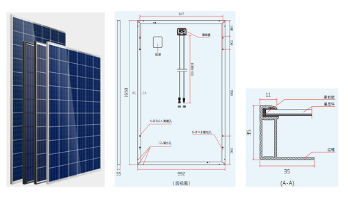 太陽能電(diàn)池組為多晶矽或單晶矽,是由高效晶(jīng)體矽(guī)太陽能電池片、超白布紋鋼化玻璃、EVA、透明TPT背板以及鋁合金邊框組成。