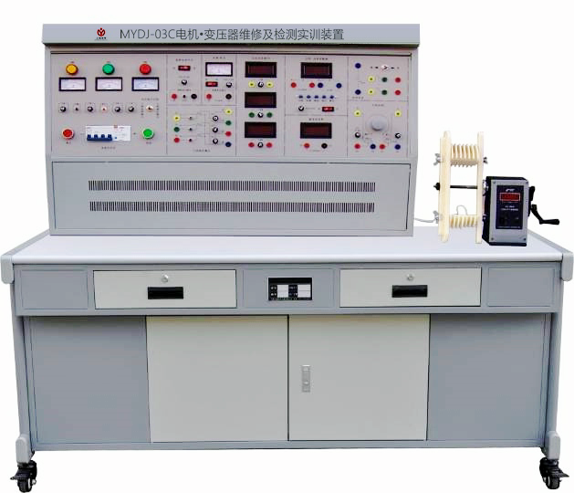 電機(jī).變壓器維修(xiū)及檢測實驗台是進行單相變壓器、單相電容運轉異步(bù)電動機和三相鼠籠異步電動機的拆除、重繞、組裝、維修(xiū)和電機(jī)出廠檢測的技能實訓平台,可對學生在電機拆除、重繞(rào)、組裝及檢修方(fāng)麵進(jìn)行(háng)技能訓練(liàn)。適用於機電一體化、自動化及相(xiàng)關電氣專業的《電機製造工藝(yì)》《電(diàn)機維(wéi)修》《電機測試》等課程,結(jié)合機械工業出版(bǎn)社和中國勞(láo)動保障部《國家職業標準—維修(xiū)電工》《職業技能鑒(jiàn)定培訓教材—維修電(diàn)工》等相關內容,同時可作為初級、中級、高級維(wéi)修電工的等級考核與鑒定的設備(bèi)。