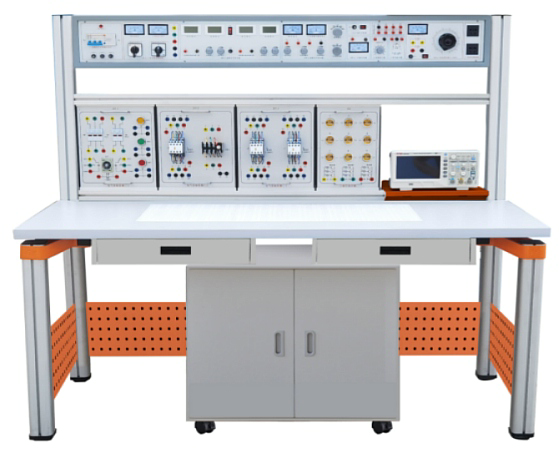 1、本裝置可提供實訓所需的交(jiāo)流電源(yuán)、低壓(yā)直流電源、可調恒流源、函(hán)數信號發生器(含頻率計)、受控源、交直流測量儀表(電壓、電流、功率、功率因數)、各實訓掛箱及電機等(děng)。