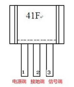 從正麵看(kàn)它的(de)三個腳分別是正極、負極、信號。