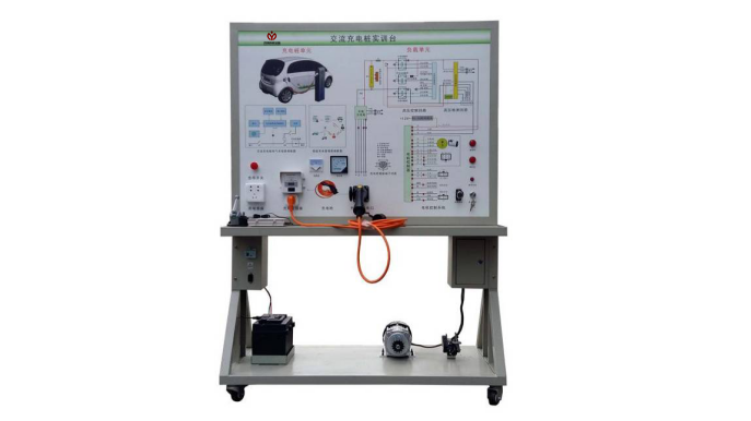 2.麵板采用4mm厚耐腐蝕、耐創擊(jī)、耐汙染、防火、防潮的高級鋁塑(sù)板,表麵經特殊工藝噴塗底漆處理;麵板打印有(yǒu)永不褪色的彩色電路圖與工(gōng)作(zuò)原理示意圖;學(xué)員可直觀對照電動汽車(chē)充電與電機驅動係統結(jié)構原(yuán)理圖和實物,認識和分析電動汽(qì)車充電與電機驅動係統的工作原理。
