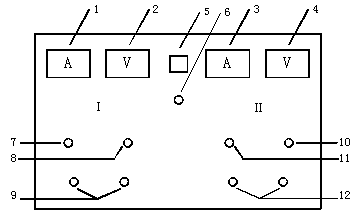 1——Ⅰ路電流輸出(chū)指示(shì)     5——Ⅰ、Ⅱ路電源開關          9——Ⅰ路電源輸出接(jiē)線柱