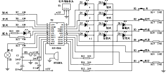 “擺頭”鍵:當風扇(shàn)運轉時,按此鍵可控製電子擺(bǎi)頭運轉,當風扇停止時,此鍵不動作。