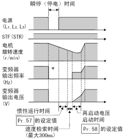 ·在再啟動的電壓(yā)上升時,如果發生瞬(shùn)間停止,將從啟動頻率開始啟動。