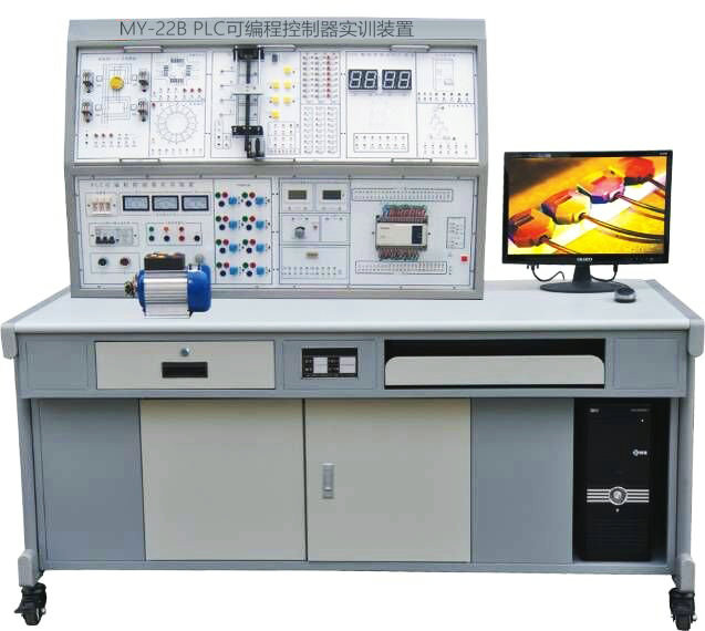 集可編(biān)程邏輯控製(zhì)器、Gx Developer編程軟件、仿真實訓教(jiāo)學軟件、實(shí)訓模塊(kuài)、實訓實物、電氣實訓網孔板(bǎn)、電氣元器件模塊等於一體。在本裝置(zhì)上,可直觀地進行(háng)PLC的基本指令訓練,多個PLC實際應(yīng)用的模擬及實物控製訓練。裝置配備的主機(jī)采(cǎi)用三菱FX1N-40 mR主機,集成數字量I/O(24路(lù)數字量輸入16路數字量輸出)三相鼠籠異步電機,並提供實訓(xùn)所(suǒ)需的+24V/1A、+5V/1A直流電源,適合高職(zhí)院校、職業學校、技校的機電設備安裝與維修、機電技術應用、電氣運行與控製、電氣技(jì)術應用、電子(zǐ)電器應用與維修等專業和非機電類專業的《可編程控製器技術(shù)》、《電氣及PLC控製技術》、《PLC及其應用》的實訓(xùn)。也適(shì)合技工學校、職業培訓學校、職教中心、鑒定站的PLC實操、技能鑒定考核。
