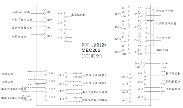 | K2 | 風機手自動運行狀態 | K7 | 電加濕控製 |