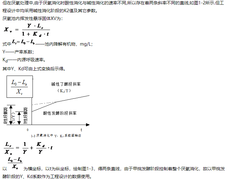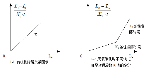 厭氧消化,雖然厭氧菌代謝產生的能量較少,有機物分解速率較慢,但是有機物的降解過程仍符合好氧生化反應動力學關係式,即:有機物去除特性可表示為: