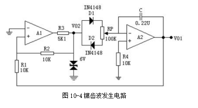 在示波器的掃描電路以及數字電(diàn)壓表等電路中常常使用齒波。圖10-3為鋸齒波發生電路(lù),它在原三角波發生電路的基礎上,用二極管(guǎn)D1、D2和電位器R