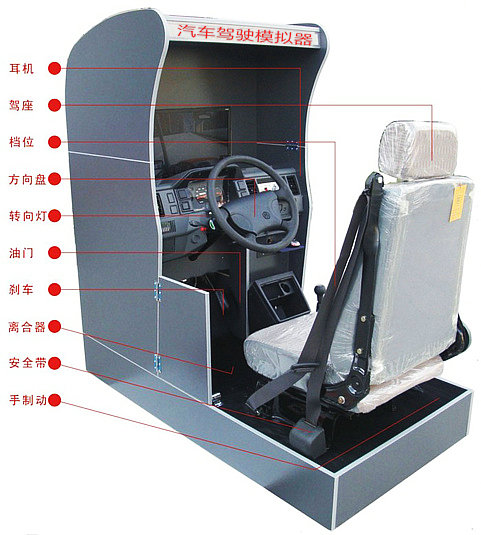 汽車駕(jià)駛模擬器 座艙(cāng)由駕(jià)駛(shǐ)艙座,視景計算機(jī),視屏(19寸顯示器),操作(zuò)傳感器,數據采集卡,耳機(jī)和話筒等組成。
