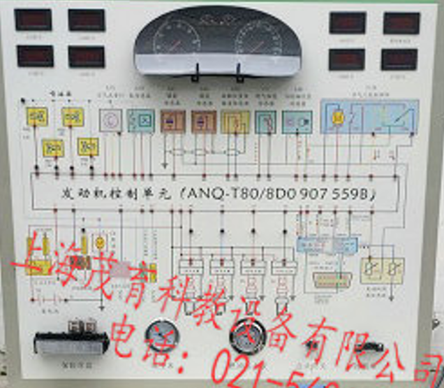 ②工作原理展示。實驗台控製麵板上的電路圖顯示了發動機電(diàn)控係統的工作原理;各種(zhǒng)儀表的讀數表示(shì)發動機的運轉狀態,幫助學生了解(jiě)電控發動機的工(gōng)作過程。