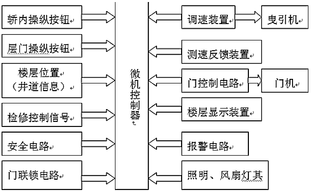 電梯的電氣控製係統從最開(kāi)始的繼電器控製係統發(fā)展到現在的微機控製係統,目前的(de)電梯主要是采用微(wēi)機控製係統(tǒng),有部分客(kè)梯和雜物(wù)梯為了節(jiē)約成本才使用(yòng)PLC控製係統。電(diàn)梯控(kòng)製(zhì)係統結構圖如圖1。
