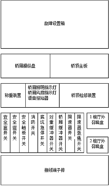電梯電氣控製係統結(jié)構主要有:樓層(céng)外呼板、轎廂指令板、轎內顯示板、轎頂板、電梯控製櫃、曳引電動機、通信線等組(zǔ)成。樓層外呼板主要功能(néng)是供樓層人員上下呼梯以及查看電梯目前所在樓層以及工作(zuò)狀態;轎廂指令(lìng)板與轎內顯示板主要功能是供(gòng)轎廂內人員(yuán)選層,以及查看電梯目前所在樓層以(yǐ)及工作狀態;轎頂控製器主(zhǔ)要功能是采集開(kāi)關門、光幕(mù)、轎廂重量、機房控製櫃等信息(xī)以及向門機變(biàn)頻器發開關門指令;電梯控製櫃主要作用是收集樓層外呼板(bǎn)、轎廂指令板、轎頂控製器以及平層開關、上下強換速開關(guān)、安全回路信號等指令進行邏輯運算(suàn),最後控(kòng)製曳引(yǐn)電動機正反(fǎn)轉或停車。