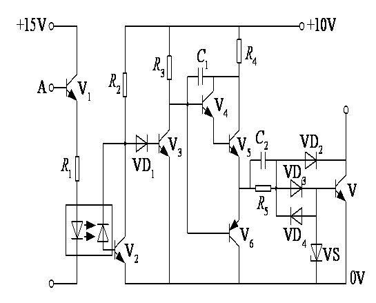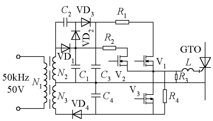 √V2關斷而V3開通時輸出負脈衝;V3關斷後R3和R4提供門(mén)極負偏壓。