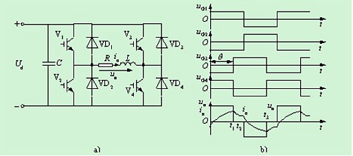 2.電路中開關器(qì)件的作用僅是改(gǎi)變直流甩流的(de)流通路徑,因(yīn)此(cǐ)交流側(cè)輸出電流為(wéi)矩形波,並且與負載阻抗角無關。而交流側輸出電壓波形和相位則因負載阻抗情況的不同而不同。