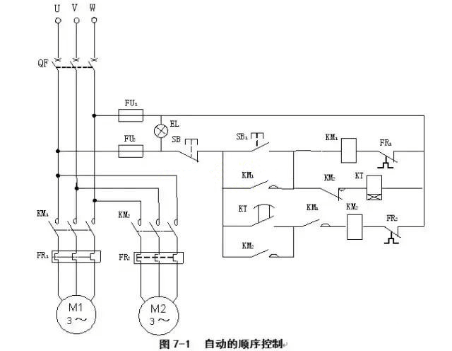 ①從QF下邊U相考慮至FU2 從FU2小組出線端至SB常閉 從SB小組出線至SB1開與關 從SB1小組(zǔ)出線至KM1線(xiàn)圈 從KM1線(xiàn)圈(quān)小組出線至FR1;將(jiāng)KM1開與關並在SB1開與關上(鎖緊)。