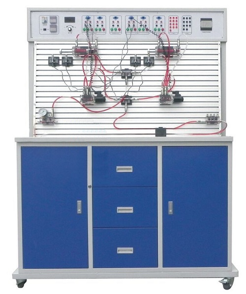 PLC控製透明液壓傳動演示(shì)係統實驗裝置各種(zhǒng)機械對液壓傳動的要求是多(duō)種多樣的,一般多是由方向(xiàng)控製回(huí)路,壓力控製(zhì)回路,速度控製回路,順序控製回路等(děng)基本功能(néng)回路組成(chéng)。該實驗台的實驗屏采用1.0mm冷軋鋼板精製而成(chéng),各液壓元件均采用過渡底板,整體外形美(měi)觀(guān)大方,結(jié)構堅固耐用(yòng),操作方便。本演示係統通過對以上四大基本功(gōng)能的十(shí)八種基本控製回路的實驗演示(擴展(zhǎn)實驗可達60種),使學生能熟識二(èr)十多種常用液壓元件的結構,性能及用途,掌握十幾種(zhǒng)基本回路的工作過程(chéng)及原理,提高學生故(gù)障處理及解決問題的能力,在實驗演(yǎn)示中得到啟發,引(yǐn)發興(xìng)趣,利用它可以對本產品所提供的各種元件容限內的其它油路進行實驗(如圖設計,畢業設計)。