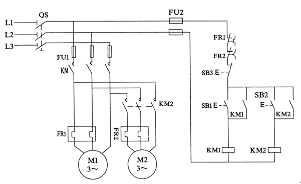 | M1、M2 | 三相鼠籠式異步電動機 | 380V(Y/△) | 2 |