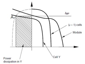 在太陽(yáng)能電池組件的串聯回路(lù)中,假定其中一塊被部分遮擋,調節負(fù)載(zǎi)電阻R,可使太陽(yáng)能組件的工作狀態(tài)由開路到短(duǎn)路。