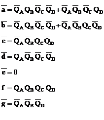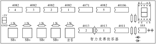 4個D觸發器的D端(duān)作為搶答操(cāo)作狀態輸入,設A組先按按(àn)鈕,A組的D=1,在CP作用下,QA=1, =0。由於(yú) =0,使(shǐ)門G1輸出為(wéi)1,G2門輸出為0,封鎖了CP,使其他後按的D狀態傳不到Q端。當A輸出為1時,其他輸出為0,通過(guò)譯碼電路,使數碼管顯示“A”字符。字符顯示譯碼器的譯碼表如下。| QA QB QC QD | a b c d e f g |