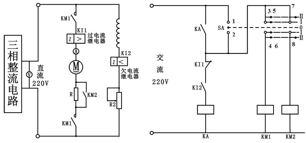 2常開觸點閉合,同(tóng)時中間繼電器KA通電,常開觸頭閉合自鎖,為直流電動(dòng)機電樞串電(diàn)阻起動作好準備工作。