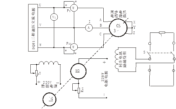 圖1 用(yòng)轉差法(fǎ)測同步發電機的同步電抗接線圖