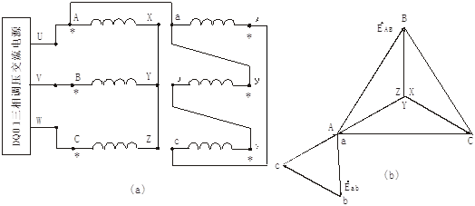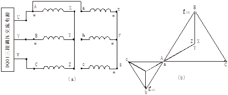 (α)接線(xiàn)圖 (b)電勢相量圖
