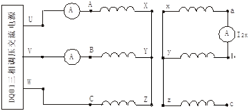 按圖3-14接線。被(bèi)試變壓器(qì)選用三相心式變壓器。將交流電壓調到輸出電壓為零的位置,接通電源(yuán),逐漸增加外施電壓, 直至副方短路電流I