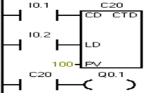 (1)CD為計數器的計數(shù)脈衝;LD為計數器的裝載(zǎi)端;PV為計數(shù)器的預設值,取值範(fàn)圍在1-32767之間。