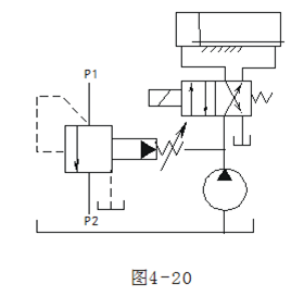 看圖4-20,先導溢流閥(fá)控製壓力的換向回路