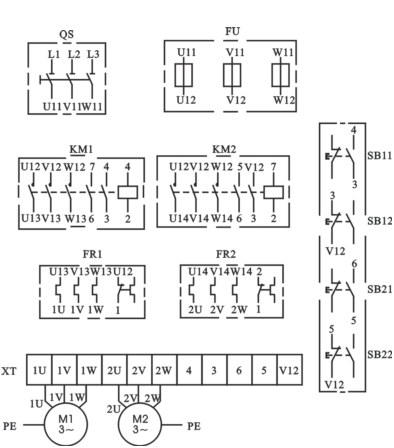 | M1、M2 | 三相鼠籠式異步電動機 |