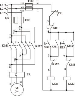 仔細檢查確認接線無誤(wù)後,接通交流電源,按下SB2,電機應正轉(電機右側的軸伸端(duān)為順時針轉,若不符合轉向要求,可停機,換接電機定(dìng)子(zǐ)繞組任意兩個接線即可)。按下SB3,電機仍應正轉(zhuǎn)。如要電機反(fǎn)轉,應先按SB1,使電機停轉,然後再按SB3,則電機反轉(zhuǎn)。若不能正常工作,則應分析並排除故障,使線路能正常工作(zuò)。
