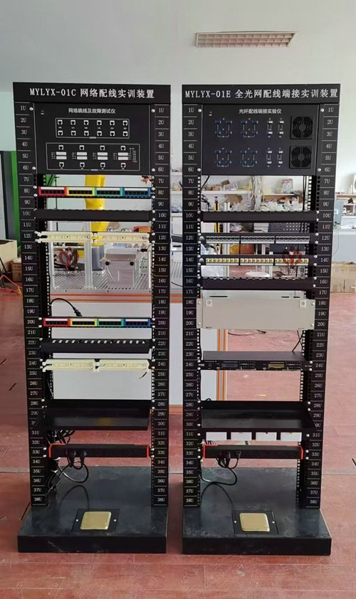配套設備:6U光纖配線端接實驗儀(yí)1台、網絡理線環2個、8口PDU電(diàn)源插座1個、12口SC+12口ST組合式光纖配(pèi)線架2台(tái)、48口SC光纖配線箱(xiāng)1台、光纖信息插座4個、機架式數碼播放器1台、零件/工具盒1個、電源地插1套。