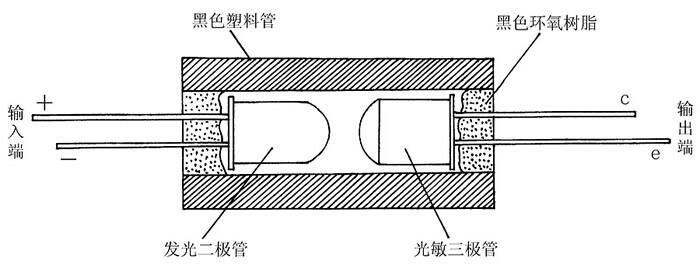7、在業餘電子製作或家電維修(xiū)時,如果手(shǒu)頭一時找不到合適的光(guāng)電耦合器,可參照圖3所示,取一隻 3mm高亮(liàng)度發光二極管(guǎn)和一隻(zhī)2mm的(de)3DU型矽光敏三極(jí)管,用電工絕緣黑膠布(bù)將它們的發(fā)光麵和(hé)受光麵正對著卷起來,然後裝入一段約 6mm×20mm的黑色硬塑管內,兩端用黑色環氧樹脂封固即成。需要指出的是:在選用發光二極管和光敏(mǐn)三極管時(shí),必須使兩者的光譜特性(尤其是峰值波長)盡量保持一致(zhì),否則會影響(xiǎng)光電耦合器的效果。光敏三極管根據需要也可以選用(yòng)光敏二極(jí)管或光敏電阻器等光敏器件(jiàn)。這種自製光電耦合器成本不足2元,其主要特(tè)性參數可參考所選用的兩隻管子的特性。