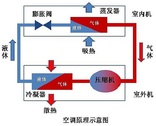 液(yè)体氟利昂经节流装置减压,进入室内机的(de)换热器(此时为蒸发器),蒸发气化吸热,成(chéng)为气体,同时(shí)吸取室内空气的热量,从而达到降低室内温度的目(mù)的。成为气(qì)体的氟利昂再次进入压缩机开始下一个循环。