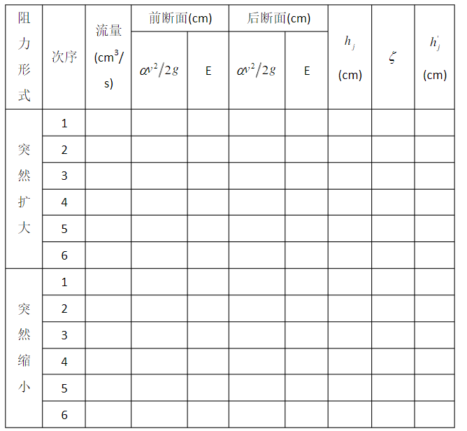 2.通過對圓管突擴局(jú)部阻力係數的包達公式和突縮局部阻力係數的經(jīng)驗(yàn)公式的實驗驗證,分析突擴與突縮圓管在相(xiàng)應條件下的局部損失(shī)大小關係。