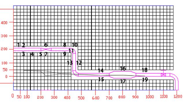 ①畢托(tuō)管測壓管(表 1中(zhōng)標*的測壓管),用以測讀畢托管探頭對準點的總水頭H’(= Z+),須注意一般情況下H’與斷麵總水頭H(=Z+)不同(因(yīn)一般u ≠ v),它的水頭線隻能定性表示總(zǒng)水(shuǐ)頭變化趨勢(shì);