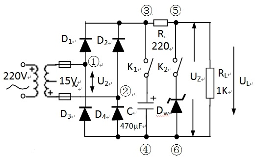 用整流二極(jí)管、三端穩壓管W7815、電容、電阻(zǔ)、設(shè)計一個輸出電壓為15V的直流穩壓電源。完成(chéng)電路的設計,並正確連線,測(cè)試輸出電壓(yā)值並記錄。(B類(lèi))