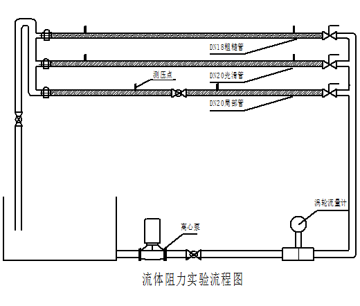 流體在流(liú)動過程中要消(xiāo)耗能量以克服流(liú)動阻力。因(yīn)此,流動阻力的測(cè)定頗為重要(yào)。從流程(chéng)圖可知水從貯槽由泵輸出,經流量計計量後,再流經(jīng)管道後回到水槽,循環利用。改變流量(liàng)並測定直(zhí)管與管件的(de)相應壓差,即可測(cè)得流體流動阻力。