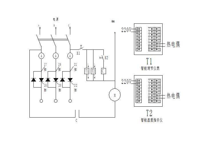 4.電控箱:在電控箱上裝由智能溫度儀表,測量固(gù)體物料進出口溫度,電源開關、風機(jī)開(kāi)關、按下開關旋鈕對應的工作開始進行。